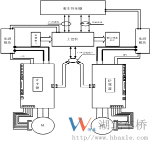 圖2 低地板門式輪邊電動車橋電氣控制結(jié)構(gòu)示意圖